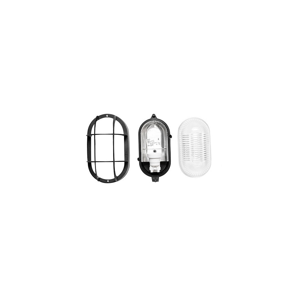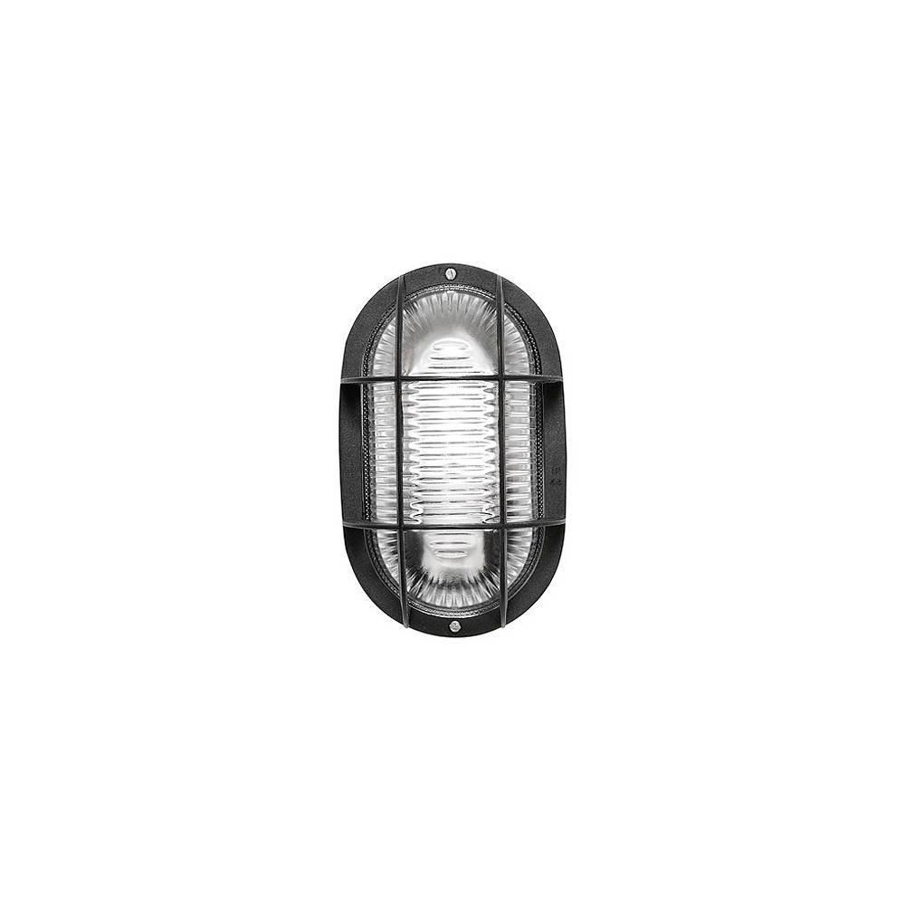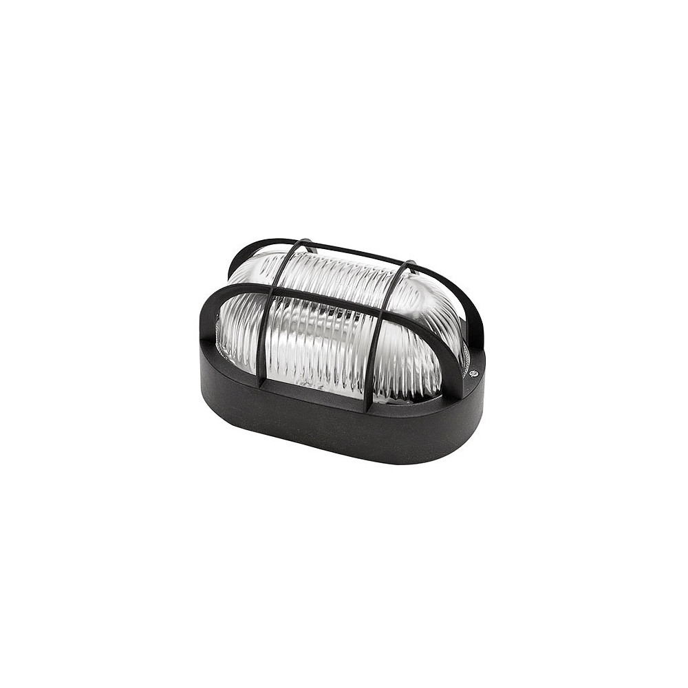 Aplique exterior IP44 ovalado negro con rejilla y portalámparas E27