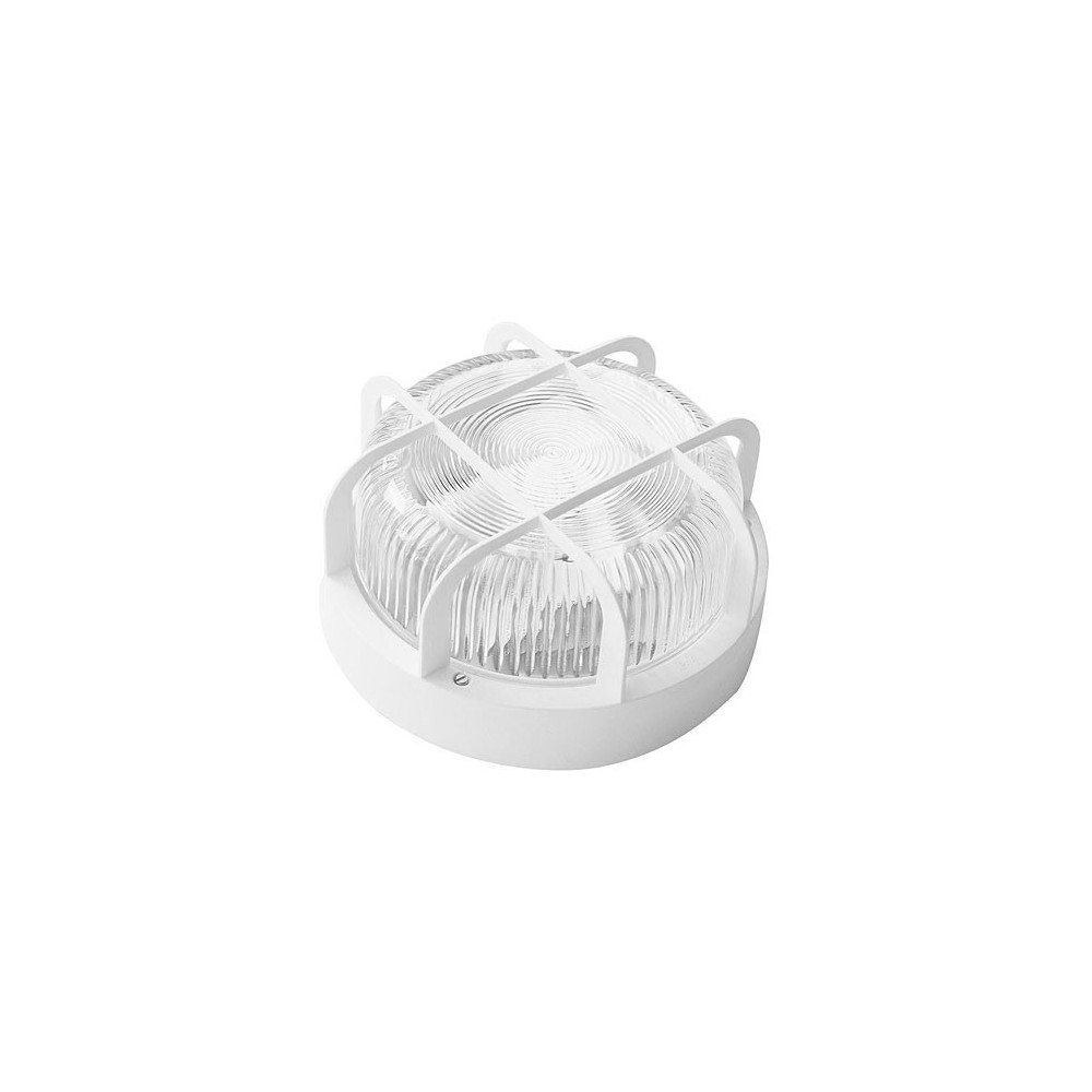 Aplique exterior IP44 redondo blanco con rejilla y portalámparas E27
