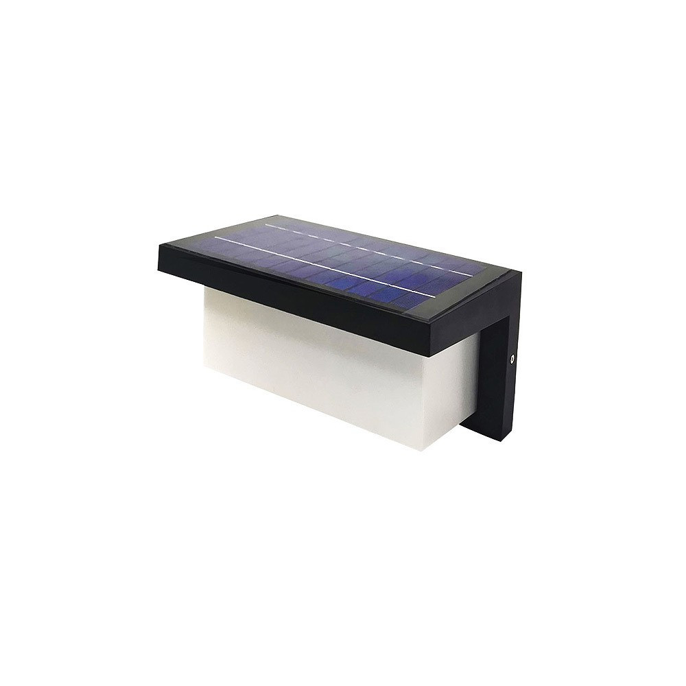Fabricado en aluminio + ABS, este aplique cuenta con una protección IP65, ideal para soportar condiciones climáticas adversas. Su panel solar de 4W/6V carga la batería de 3,2V/5000 mAh en unas 6 horas, ofreciendo una autonomía de 8 a 10 horas. Equipado con sensor de movimiento y sensor crepuscular, se enciende automáticamente al detectar movimiento durante la noche.