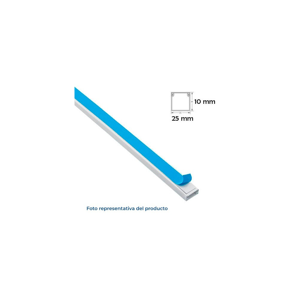 Canaleta Adhesiva para cables de 2 metros en color Blanco, ideal para una instalación ordenada y estética. Con unas dimensiones de 25x16 mm, esta minicanal permite una distribución eficiente de cables y se adhiere fácilmente a superficies gracias a su cinta adhesiva.