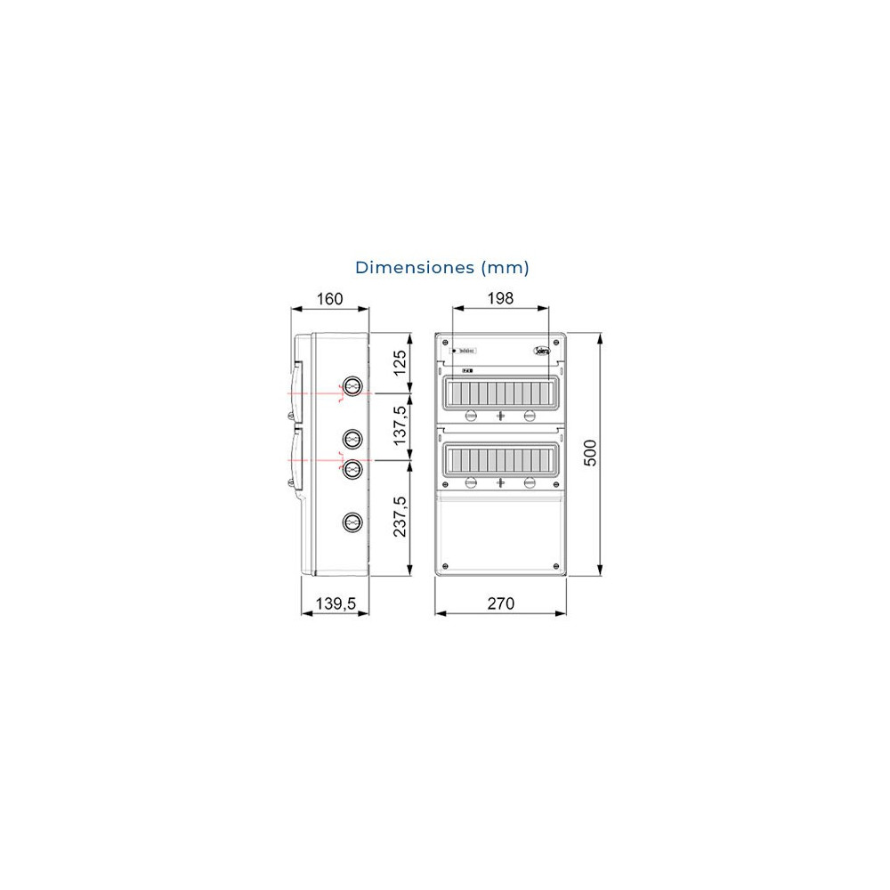 - Dimensiones exteriores (anchura x altura x profundidad): 270x500x160 mm