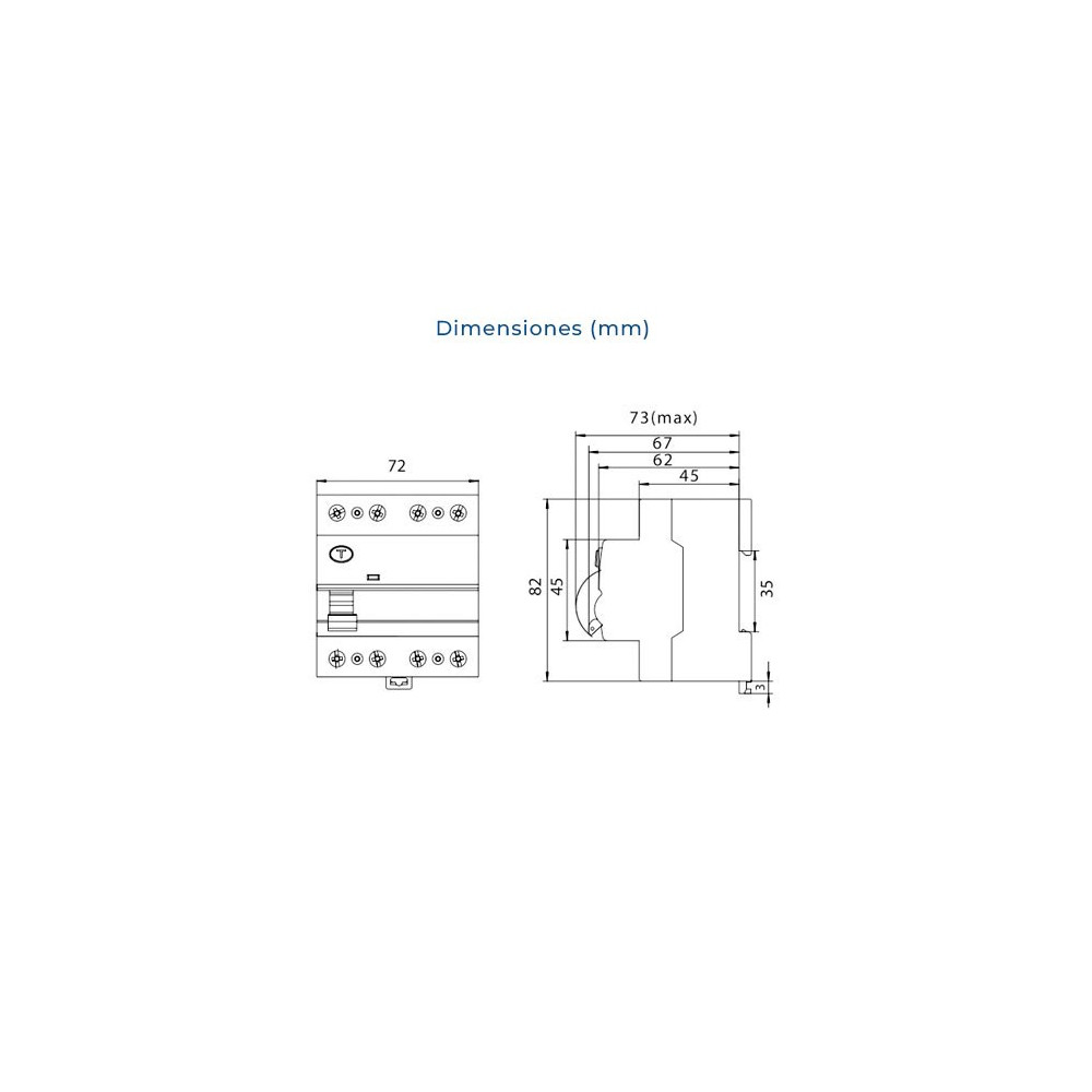 - Fácil instalación: Montaje en carril DIN.