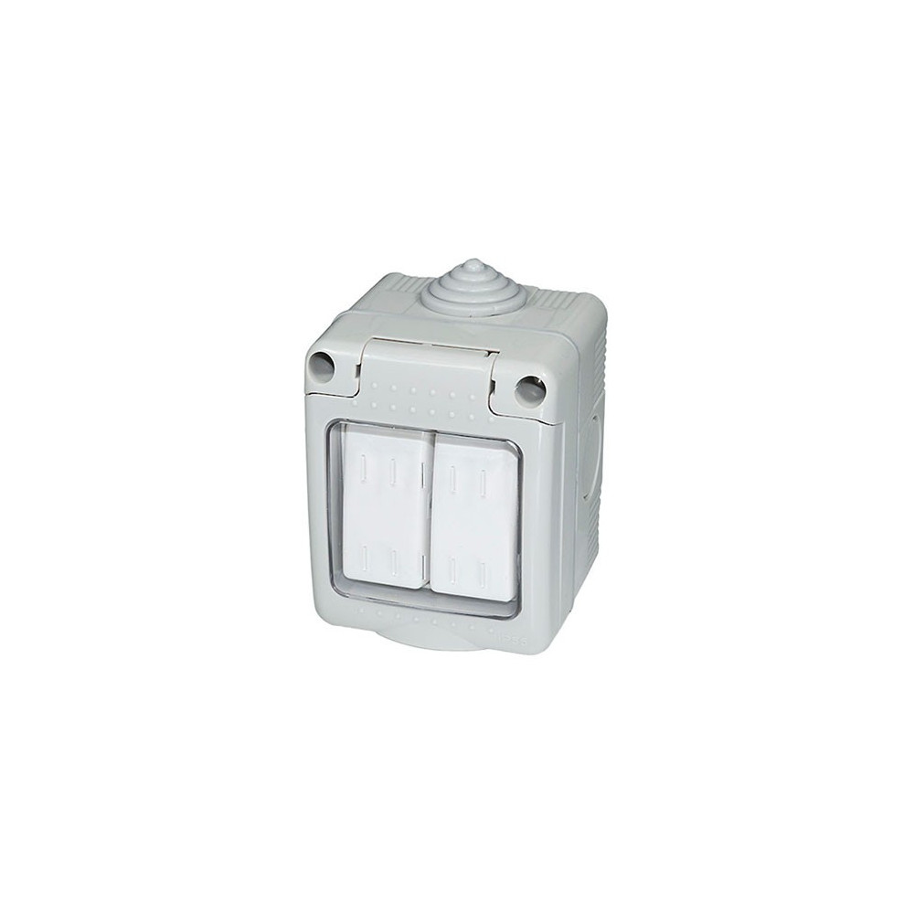 Doble conmutador/interruptor de superficie exterior estanco IP55 de 10A