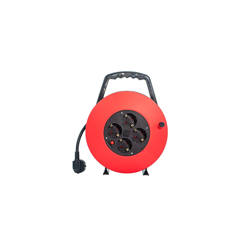 Optimiza tus conexiones eléctricas con nuestro enrollacable de 10 metros, equipado con 4 enchufes. Este prolongador se destaca por su protección térmica y asa de transporte, facilitando su manejo y seguridad. Con un cable de 3x1,5 mm² y una potencia máxima de 3600W, es ideal para múltiples usos en entornos profesionales y domésticos.