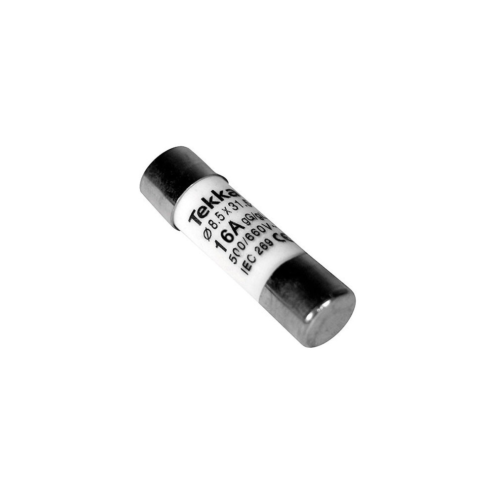 Fusible cilíndrico 8x31 de 16A (400V) clase gG, diseñado para proteger tus sistemas eléctricos contra sobrecargas y cortocircuitos. Con una capacidad de corte de 20kA, garantiza la seguridad de tus equipos y líneas.
