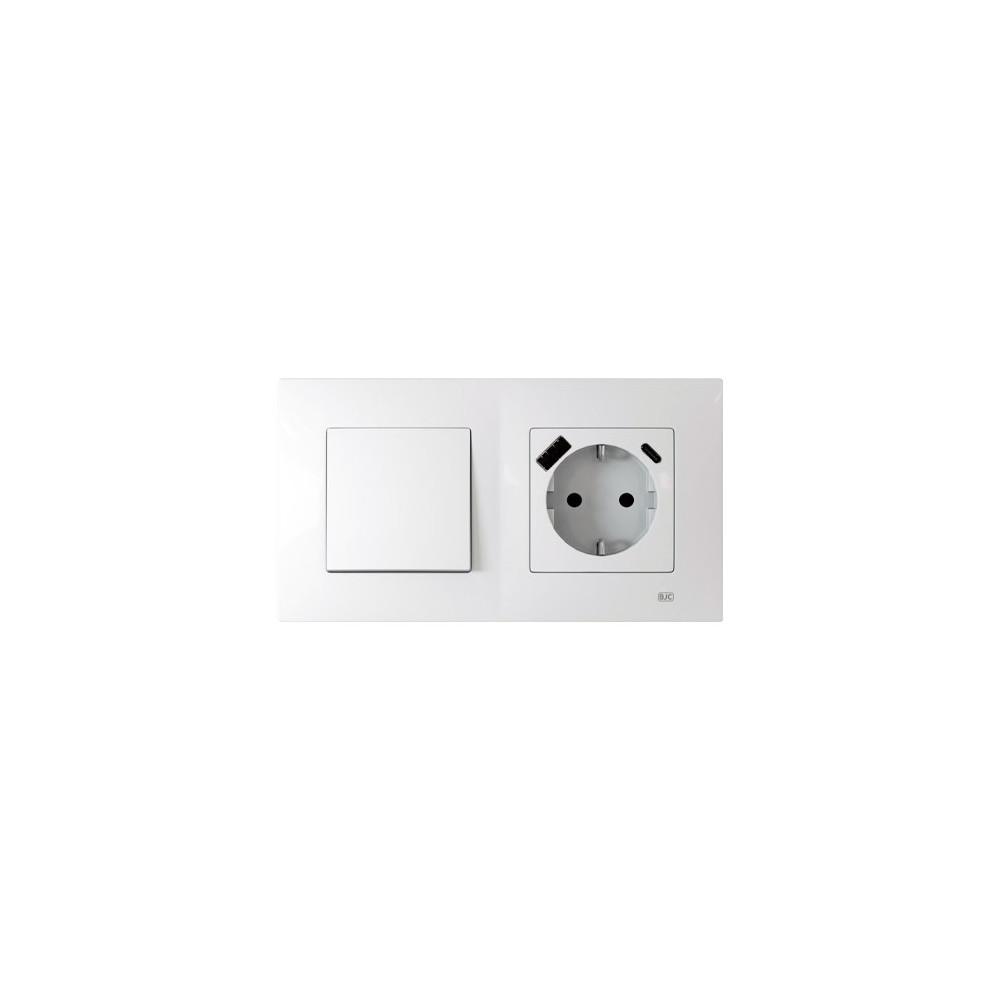 - Mecanismo: Pack BJC Viva conmutador + enchufe schuko con doble USB completo Blanco Polar